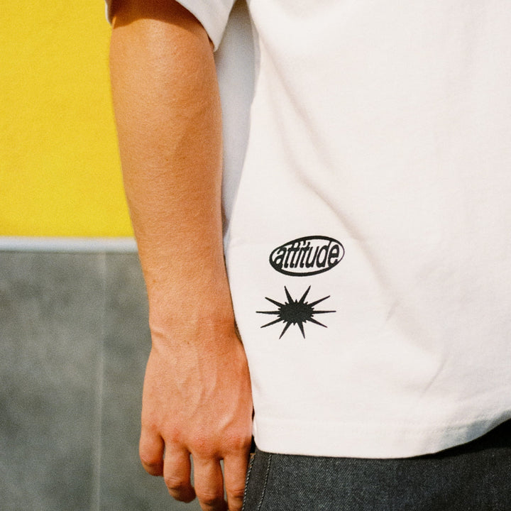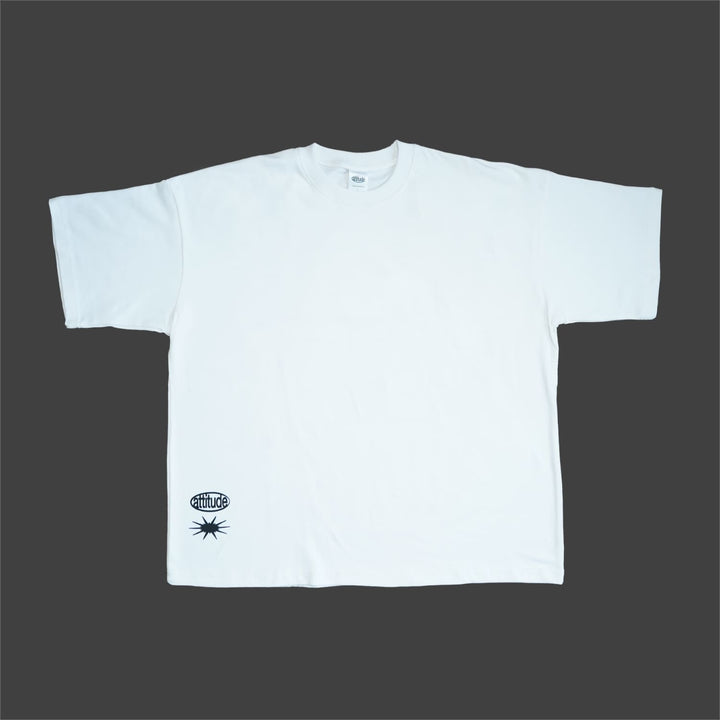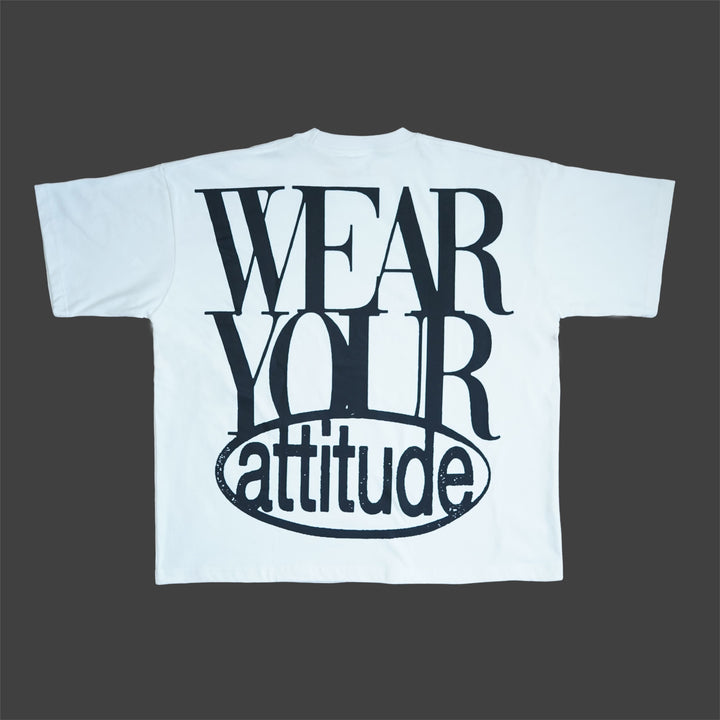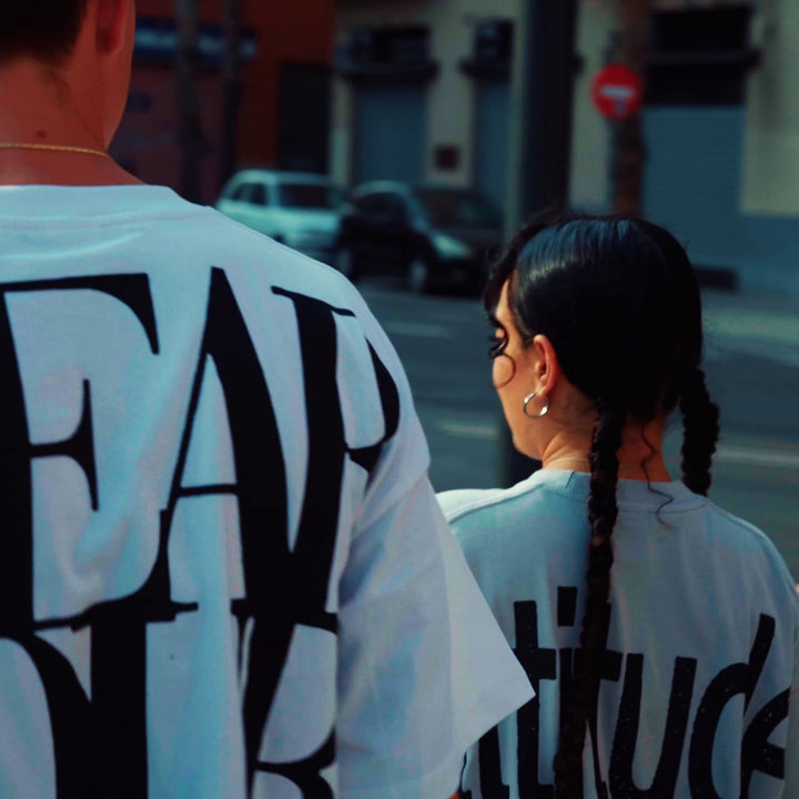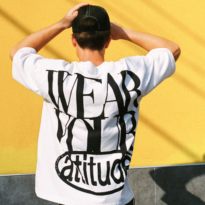 Blanca, limpia, versátil. Camiseta boxy con eslogan impactante en la espalda: el lienzo