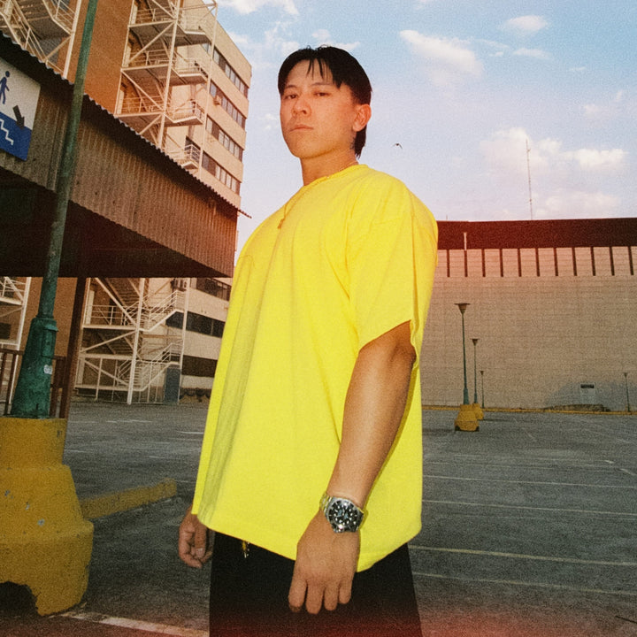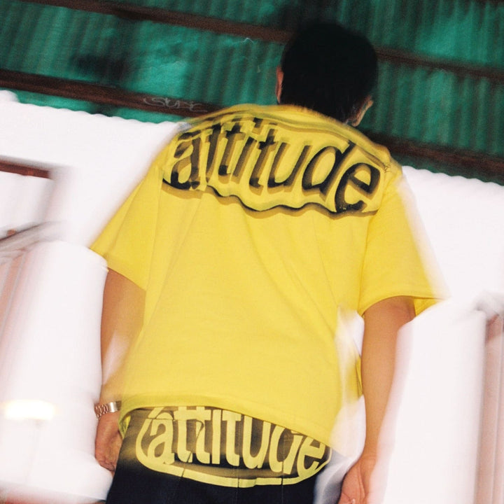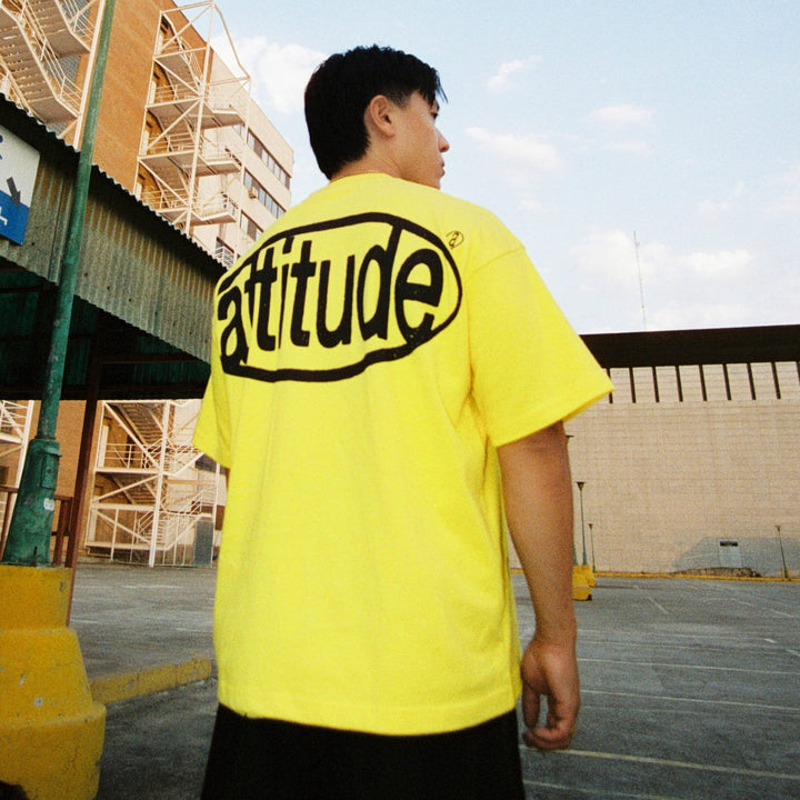 La camiseta boxy amarilla que no pasa desapercibida. Corte oversize, caída perfecta y un estampado ATTITUDE XXL en la espalda que grita quién eres sin decir una palabra.